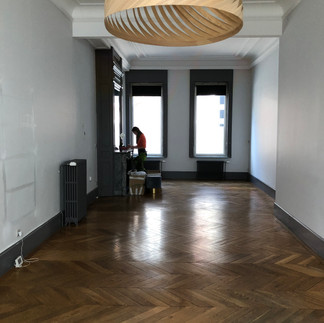 Embellissement d’un très bel appart/maison en RDC. Peinture / ponçage parquet / meubles sur mesure (bibliothèque / dressing / Pont de lit) 🧱🚧