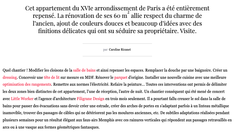 D'ailleurs, voilà le retour de la journaliste de Elle Deco sur vos interventions !!!!