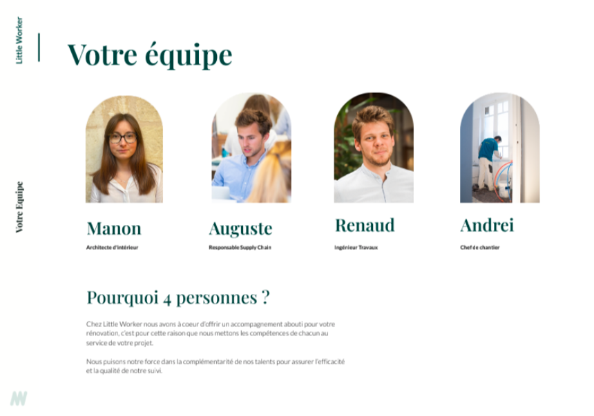 Afin de gagner en satisfaction client, et d'aider celui-ci à comprendre le parcours de son projet, nous avons, enfin Delphine et Solène ont créé un document qui explique qui sont les différents interlocuteurs à intervenir sur le projet.