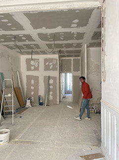 Il a été repensé par Emeric en études avec 4 chambres, un bureau, une buanderie, une cuisine fermée et un beau salon/salle à manger.