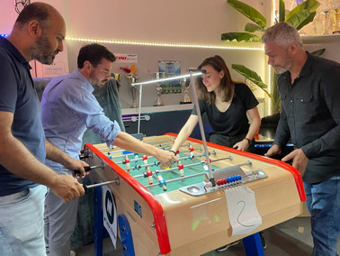 Le patron du lieu étant champion du monde de baby foot et son fils vice champion junior, les équipe ont pu jouer avec de vrais pros !