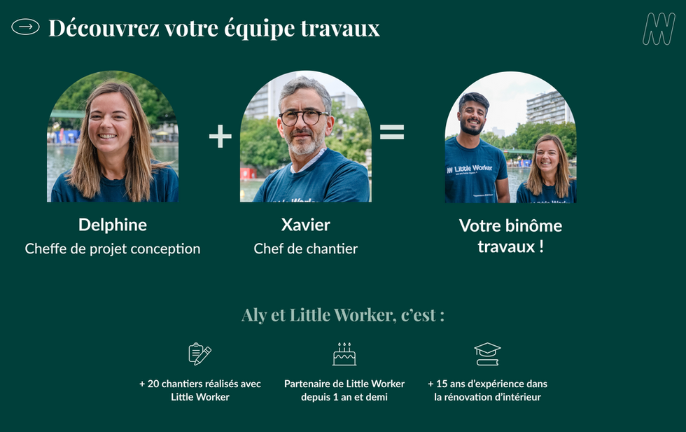 Cela permettra au client de mettre un visage sur son interlocuteur Little Worker, et de voir que celui-ci et le worker qui travaille chez lui ont l'habitude de collaborer ensemble, que c'est un partenariat de confiance.