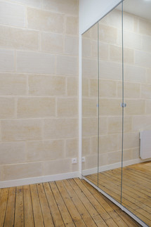 Il s'agissait de tout reprendre, nous avons fait une rénovation de parquet impressionnante, et des menuiseries sur mesure partout !