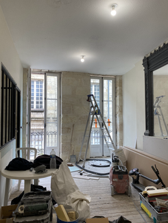 En attente pour la dépose du mur porteur en bois, et reprise structurelle du plancher haut